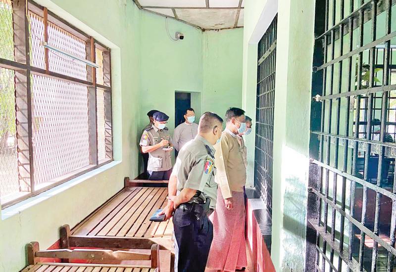 မြန်မာနိုင်ငံ အမျိုးသားလူ့အခွင့်အရေးကော်မရှင်မှ ကော်မရှင်အဖွဲ့ဝင် ဦးကျော်မြင့်နှင့် ဦးကျော်စိုးတို့ ဦးဆောင်သော ကြည့်ရှုစစ်ဆေးရေးအဖွဲ့သည် ယမန်နေ့တွင် မြင်းခြံဗဟိုအကျဉ်းထောင်နှင့် မြင်းခြံမြို့ပေါ်ရှိ ရဲစခန်း၊ တရားရုံး၊ ဆေးရုံအချုပ်ခန်းများကို ကြည့်ရှုစစ်ဆေးသည်။