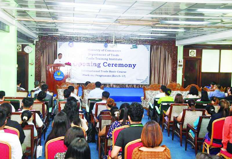 အပြည်ပြည်ဆိုင်ရာကုန်သွယ်မှုအခြေခံသင်တန်း (စနေ၊ တနင်္ဂနွေ) အမှတ်စဉ်(၁၂) သင်တန်းဖွင့်ပွဲအခမ်းအနားကို ယမန်နေ့နံနက် ၁၀ နာရီခွဲတွင် ရန်ကုန်မြို့ စီးပွားရေးနှင့် ကူးသန်းရောင်းဝယ်ရေးဝန်ကြီးဌာန၊ ကုန်သွယ်ရေးဦးစီးဌာန၊ ပို့ကုန်သွင်းကုန်ရုံးညီလာခံခန်းမ၌ ကျင်းပသည်။