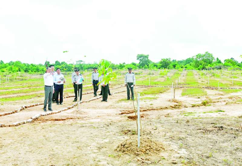 သယံဇာတနှင့်သဘာဝပတ်ဝန်းကျင်ထိန်းသိမ်းရေးဝန်ကြီးဌာန ပြည်ထောင်စုဝန်ကြီး ဦးခင်မောင်ရီသည် တာဝန်ရှိသူများနှင့်အတူ ယနေ့နံနက်ပိုင်းတွင် ရန်ကုန်-မန္တလေးအမြန်လမ်း မိုင်တိုင် ၅၁ ရှိ စလူကြိုးဝိုင်းဧရိယာအတွင်း စိုက်ပျိုးထားသည့် တစ်အုပ်တစ်မစိုက်ခင်းငါးဧက ရှင်သန်အောင်မြင်နေမှု၊ စလူကြိုးဝိုင်းအတွင်း ဝါး၊ ကြိမ်နှင့် သစ်မျိုးစုံ ရောနှောစိုက်ခင်းဧက ၂၀ စိုက်ခင်း၌ အကွက်အလိုက် သစ်၊ ဝါး၊ ကြိမ် မျိုးစိတ်အလိုက် ရောနှောစိုက်ပျိုးထားမှုနှင့် ရှင်သန်မှုအခြေအနေများကို ကြည့်ရှုစစ်ဆေးပြီး တာဝန်ရှိသူများ၏ တင်ပြမှုများအပေါ် လိုအပ်သည်များမှာကြားသည်။