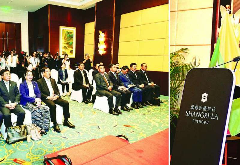 မြန်မာ-တရုတ် စီးပွားရေးပူးပေါင်းဆောင်ရွက်မှုမြှင့်တင်ရေး ဒုတိယအကြိမ်တွေ့ဆုံပွဲကို ယနေ့ဒေသစံတော်ချိန် မွန်းလွဲ ၁ နာရီတွင် တရုတ်ပြည်သူ့သမ္မတနိုင်ငံ စီချွမ်ပြည်နယ် ချန်ဒူးမြို့ရှိ Shangri La ဟိုတယ်၌ ကျင်းပပြုလုပ်ရာ ပြည်ထောင်စုသမ္မတမြန်မာနိုင်ငံတော် ယာယီသမ္မတ နိုင်ငံတော်လုံခြုံရေးနှင့်အေးချမ်းသာယာရေးကော်မရှင်ဥက္ကဋ္ဌ ဗိုလ်ချုပ်မှူးကြီး မင်းအောင်လှိုင် တက်ရောက်အမှာစကားပြောကြားသည်။