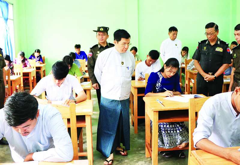 လက်ထောက်လူဝင်မှုကြီးကြပ်ရေးမှူးရာထူးအတွက် တိုင်းဒေသကြီး/ ပြည်နယ်များရှိ သတ်မှတ်နေရာအသီးသီး၌ အင်္ဂလိပ်စာရေးဖြေစာမေးပွဲများ တစ်ပြိုင်တည်းကျင်းပပြီး ပြည်ထောင်စုနယ်မြေ (နေပြည်တော်) တွင် စာမေးပွဲကို ဇမ္ဗူသီရိမြို့နယ် အမှတ် (၅) အခြေခံပညာအထက်တန်းကျောင်း၌ ကျင်းပရာ လူဝင်မှုကြီးကြပ်ရေးနှင့်ပြည်သူ့အင်အားဝန်ကြီးဌာန ပြည်ထောင်စုဝန်ကြီး ဦးမြင့်ကြိုင်၊ ဒုတိယဝန်ကြီး ဦးဌေးလှိုင်နှင့် တာဝန်ရှိသူများသည် ယနေ့နံနက်ပိုင်းက အဆိုပါစာမေးပွဲ ကျင်းပရာသို့ သွားရောက်ကြည့်ရှုအားပေးသည်။