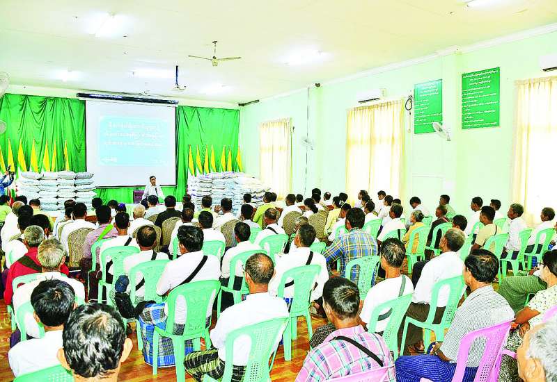 မိုးစပါးစိုက်ပျိုးတောင်သူများသို့ သီးနှံပေါ်ပေးစနစ်ဖြင့် ဓာတ်မြေဩဇာသွင်းအားစုပေးအပ်ခြင်း အခမ်းအနားကို ယနေ့နံနက်ပိုင်းတွင် ဒက္ခိဏသီရိမြို့နယ် အထွေထွေအုပ်ချုပ်ရေးဦးစီးဌာနရုံး၌ ကျင်းပသည်။