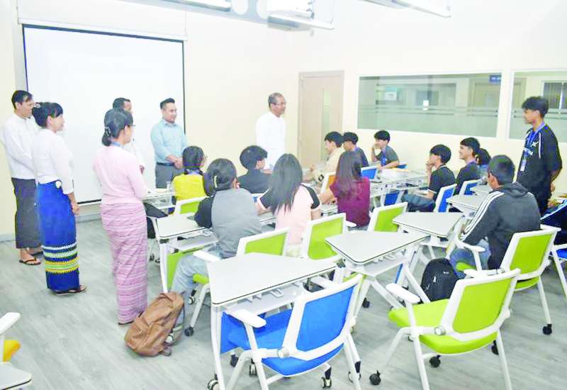 အလုပ်သမား ဝန်ကြီးဌာန ဒုတိယဝန်ကြီး ဦးဝင်းရှိန်သည် ယနေ့နံနက်ပိုင်းတွင် ရန်ကုန်တိုင်းဒေသကြီးရှိ အလုပ်သမားရေးရာ တာဝန်ရှိသူများနှင့်အတူ ရန်ကုန်တိုင်းဒေသကြီး စမ်းချောင်းမြို့နယ်ရှိ Knowledge Manage-ment and Dedication (KMD) Training Center တွင် IT ပိုင်းဆိုင်ရာ နည်းပညာသင်တန်းများ ဖွင့်လှစ်သင်ကြားနေမှုကို ကြည့်ရှုအားပေးသည်။