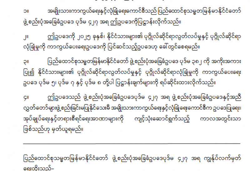 လေးနှစ်ခွဲကြာ နိုင်ငံတော်တာဝန်ကို ထမ်းဆောင်ခဲ့ပြီးနောက် နိုင်ငံတော်စီမံအုပ်ချုပ်ရေးကောင်စီ၏ ရှေ့လုပ်ငန်းစဉ်များနှင့် ဦးတည်ချက်များမှာ ပြီးမြောက်သွားခဲ့ပြီဖြစ်သည်။ ဖွဲ့စည်းပုံ အခြေခံဥပဒေ (၂၀၀၈ ခုနှစ်) ပုဒ်မ ၄၁၈ အရ တပ်မတော်ကာကွယ်ရေးဦးစီးချုပ်အား နိုင်ငံတော်အာဏာလွှဲအပ်ဆောင်ရွက်စေခဲ့သည့် အမိန့်အားလည်း အမျိုးသားကာကွယ်ရေးနှင့် လုံခြုံရေးကောင်စီအမိန့်အမှတ်၊ ၁/၂၀၂၅ ကို ၂၀၂၅ ခုနှစ် ဇူလိုင်လ ၃၁ ရက် ရက်စွဲဖြင့် ထုတ်ပြန်၍ ပယ်ဖျက်လိုက်ပြီဖြစ်သည်။ သို့ဖြစ်ရာ ဖွဲ့စည်းပုံအခြေခံ ဥပဒေပုဒ်မ ၄၂၉ အရ အမျိုးသားကာကွယ်ရေးနှင့် လုံခြုံရေးကောင်စီက အမိန့်ကိုပယ်ဖျက်ကြောင်း ကြေညာသည့်နေ့မှစ၍ ခြောက်လအတွင်း အထွေထွေရွေးကောက်ပွဲကို ကျင်းပပေးရမည်ဖြစ်သည်။
