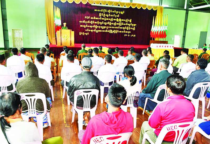 PDF အမည်ခံအကြမ်းဖက်သမားများသည် နိုင်ငံတော်တည်ငြိမ်အေးချမ်းရေးနှင့် အစိုးရအုပ်ချုပ်မှုယန္တရားများ ပျက်ပြားစေရန်ရည်ရွယ်၍ တိုင်းဒေသကြီးနှင့် ပြည်နယ်အချို့ရှိ မြို့၊ ရွာများအတွင်း ဒေသခံပြည်သူများအသွင်ဖြင့် စိမ့်ဝင်ဝင်ရောက်လာကာ ဌာနဆိုင်ရာ အဆောက်အအုံများ၊ ပြည်သူလူထု၏ တိုက်တာအိုးအိမ်များကို မိုင်းထောင်ဖောက်ခွဲခြင်း၊ Drop Bomb ချတိုက်ခိုက်ခြင်း၊ အများပြည်သူသွားလာ အသုံးပြုလျက်ရှိသည့် လမ်း၊ တံတားများအား မိုင်းထောင်ဖောက်ခွဲခြင်း စသည့် အဖျက်အမှောင့်လုပ်ငန်းများကို နည်းလမ်းမျိုးစုံဖြင့် လုပ်ဆောင်လျက်ရှိသည်။