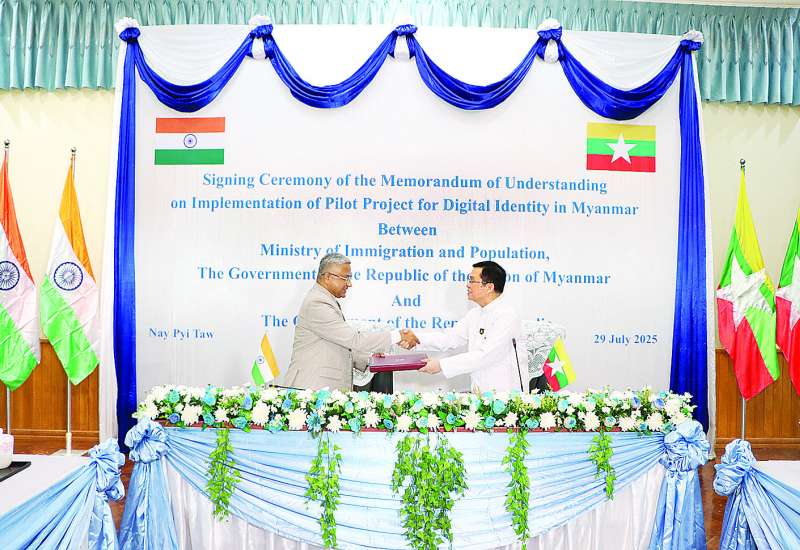 လူဝင်မှုကြီးကြပ်ရေးနှင့်ပြည်သူ့အင်အားဝန်ကြီးဌာနနှင့် အိန္ဒိယသမ္မတနိုင်ငံအစိုးရတို့အကြား ဆောင်ရွက်မည့် မြန်မာနိုင်ငံ Digital Identity အတွက် ရှေ့ပြေးစီမံကိန်း ပူးပေါင်းဆောင်ရွက်ခြင်းဆိုင်ရာ နားလည်မှုစာချွန်လွှာလက်မှတ်ရေးထိုးပွဲအခမ်းအနားကို ယမန်နေ့နံနက် ၁၀ နာရီက နေပြည်တော်ရှိ အဆိုပါဝန်ကြီးဌာနအစည်းအဝေးခန်းမ၌ ကျင်းပသည်။