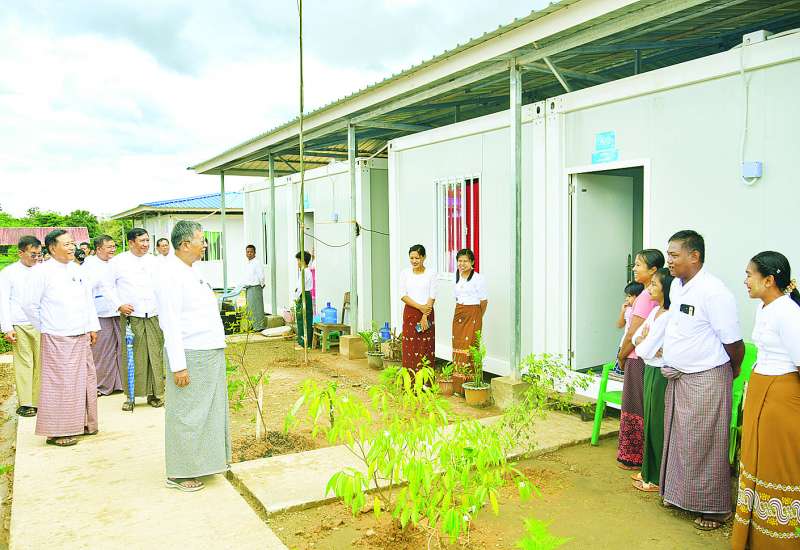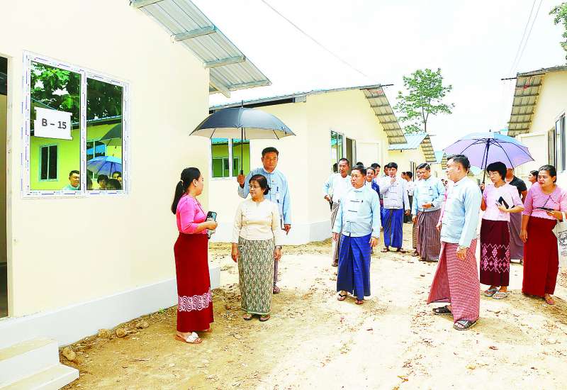 မြန်မာနိုင်ငံတော်ဗဟိုဘဏ်ဥက္ကဋ္ဌ ဒေါ်သန်းသန်းဆွေသည် ဒုတိယဥက္ကဋ္ဌ ဦးဇော်မြင့်နိုင်နှင့်အတူ ငလျင်ဒဏ်ကြောင့် ဝန်ထမ်းအိမ်ရာ ထိခိုက်ပျက်စီးခဲ့သော ဝန်ထမ်းမိသားစုများ နေထိုင်ရန်အတွက် မြန်မာနိုင်ငံတော်ဗဟိုဘဏ်ရုံး အမှတ်(၅၅) ဧရိယာအတွင်းတွင် တည်ဆောက်ပြီးစီးသည့် Bashar လိုင်းခန်း ၁၆ လုံး၊ Container House နှစ်ခန်းတွဲ ၃၇ လုံးနှင့် Container Singal ၅၉ လုံးတို့တွင် ဝန်ထမ်းများ စနစ်တကျပြောင်းရွှေ့ နေရာချထားမှုအခြေအနေများကို ကြည့်ရှုစစ်ဆေးသည်။