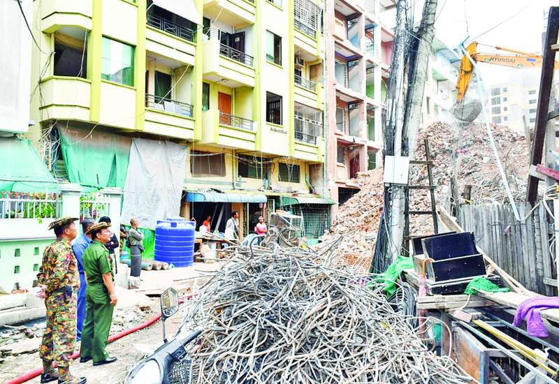 မန္တလေးငလျင်ကြီးကြောင့် ထိခိုက်ပျက်စီးခဲ့ရသည့် နေရာများ၌ ပြန်လည်ထူထောင်ရေးလုပ်ငန်းများကို အဖွဲ့အစည်းအသီးသီးက ဒေသခံပြည်သူများနှင့် ပူးပေါင်း၍ အင်တိုက်အားတိုက် ကူညီဆောင်ရွက်ပေးလျက်ရှိရာ ယနေ့တွင် မန္တလေးမြို့၊ အောင်မြေသာစံမြို့နယ်၊ အနှိပ်တော်ရပ်ကွက်၊ Sky Villa ၌ ငလျင်ဒဏ်ကြောင့် ထိခိုက်ပျက်စီးခဲ့ပြီး ရှင်းလင်းရန် ကျန်ရှိနေသည့် “A” ဆောင်အား စက်ယန္တရားကြီးများ အသုံးပြု၍ ဖယ်ရှားရှင်းလင်းရေးလုပ်ငန်းများနှင့် အောင်မြေသာစံမြို့နယ်၊ ပုလဲငွေရောင်ရပ်ကွက်ရှိ ငလျင်ဒဏ်ကြောင့် ပြိုကျပျက်စီးခဲ့သော အန္တရာယ်ရှိ အဆောက်အအုံအပျက်အစီးများအား စက်ယန္တရားကြီးများ အသုံးပြု၍ အပြီးသတ်ဖယ်ရှား ရှင်းလင်းမှုများကို ဆောင်ရွက်ပေးကြသည်။