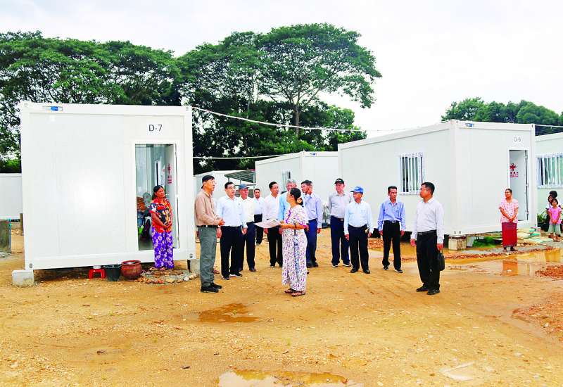 နိုင်ငံတော်စီမံအုပ်ချုပ်ရေးကောင်စီအဖွဲ့ဝင် ဒုတိယဝန်ကြီးချုပ်နှင့် ပို့ဆောင်ရေးနှင့်ဆက်သွယ်ရေးဝန်ကြီးဌာန ပြည်ထောင်စုဝန်ကြီး ဗိုလ်ချုပ်ကြီး မြထွန်းဦးသည် ဒုတိယဝန်ကြီးများ၊ ဌာနဆိုင်ရာတာဝန်ရှိသူများနှင့်အတူ ယမန်နေ့ညနေပိုင်းက ပို့ဆောင်ရေးနှင့်ဆက်သွယ်ရေးဝန်ကြီးဌာနမှ ငလျင်ဘေးဒဏ်သင့်ဝန်ထမ်းများနှင့် မိသားစုဝင်များ ယာယီနေထိုင်နိုင်ရန်အတွက် အမျိုးသားသဘာဝဘေးအန္တရာယ်ဆိုင်ရာစီမံခန့်ခွဲမှုကော်မတီက ခွဲဝေချထားပေးသည့် Container House များ တပ်ဆင်တည်ဆောက်ပြီးစီးမှု၊ ဝန်ထမ်းများနှင့် မိသားစုဝင်များအား Container House များသို့ ပြောင်းရွှေ့နေရာချထားမှုကို ကြည့်ရှုစစ်ဆေးသည်။