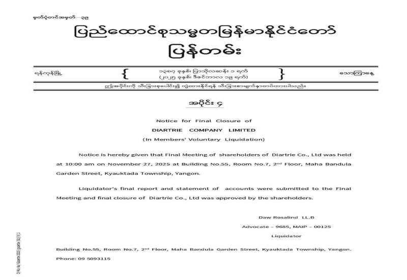 ပြည်ထောင်စုသမ္မတမြန်မာနိုင်ငံတော် ပြန်တမ်း အတွဲ (၇၈) အမှတ် (၅၁) အပိုင်း (၂) အား ဖတ်ရှုနိုင်ပါသည်-