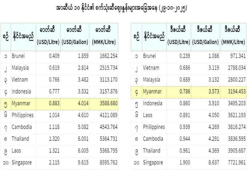 စွမ်းအင်ဝန်ကြီးဌာနသည် ပြည်တွင်းမှထုတ်ယူရရှိသည့် ရေနံစိမ်းများအား ဌာနကြီးကြပ်မှုအောက်ရှိ ရေနံချက်စက်ရုံများတွင်ချက်လုပ် ဖြန့်ဖြူးပေးလျက်ရှိသော်လည်း ပြည်တွင်းထုတ်လုပ်မှုမှာ နိုင်ငံအတွင်း လိုအပ်ချက်၏ ၃ ရာခိုင်နှုန်းခန့်သာရှိသည့်အတွက် ထပ်မံလိုအပ်သည့် စက်သုံးဆီအများစုကို နိုင်ငံခြားငွေဖြင့် ပြည်ပမှဝယ်ယူတင် သွင်းရလျက်ရှိသည်။