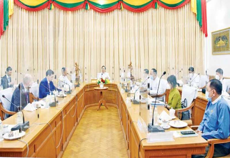 ကျန်းမာရေးဝန်ကြီးဌာန၊ ပြည်ထောင်စုဝန်ကြီး ဒေါက်တာသက်ခိုင်ဝင်းသည် ယမန်နေ့ ညနေ ၄ နာရီတွင် ဥရောပအာရှ စီးပွားရေးကော်မရှင် ကိုယ်စားလှယ်အဖွဲ့၊ ရုရှား-မြန်မာ ချစ်ကြည်ရေး အသင်းမှ စီမံချက်မန်နေဂျာ ဖြစ်သူ Mr. Ilia Nesterov ဦးဆောင်သော ကိုယ်စားလှယ်အဖွဲ့အား ကျန်းမာရေးဝန်ကြီးဌာန၏ အစည်းအဝေးခန်းမ၌ လက်ခံတွေ့ဆုံခဲ့သည်။