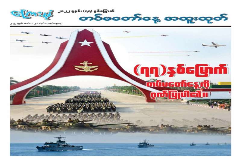 ရဲဘော်တို့ ဒို့နိုင်ငံရဲ့ လွတ်လပ်ရေးကြိုးပမ်းမှု၊ ဒို့တာဝန် အရေးသုံးပါး ကာကွယ်စောင့်ရှောက်ခဲ့မှု၊ နိုင်ငံတော်တည်ငြိမ်ရေးနှင့် ဖွံ့ဖြိုးတိုးတက် ရေးဆောင်ရွက်ခဲ့မှုဆိုင်ရာ သမိုင်းကြောင်းများနဲ့အတူ ယှဉ်တွဲပေါ်ပေါက်လာခဲ့ပြီး အစဉ်အလာကြီးမားစွာ ရပ်တည်လာခဲ့တဲ့ မြန်မာ့တပ်မတော်ဟာ ဒီကနေ့ဆိုရင် (၇၇)နှစ်တာကာလရှိလာပြီဖြစ်တယ်။