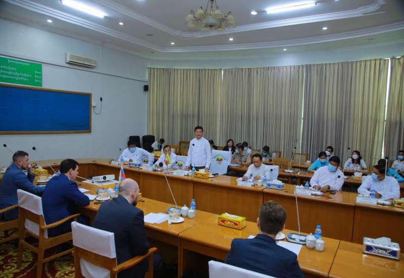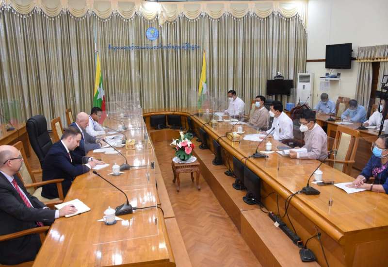 စီးပွားရေးနှင့် ကူးသန်းရောင်းဝယ်ရေးဝန်ကြီးဌာန၊ ပြည်ထောင်စုဝန်ကြီး ဒေါက်တာ ပွင့်ဆန်းသည် ယနေ့မွန်းလွဲ ၁ နာရီ က မြန်မာနိုင်ငံနှင့် ဥရောပအာရှစီးပွားရေးသမဂ္ဂတို့အကြား စီးပွားရေးပူးပေါင်း ဆောင်ရွက်မှုများမြှင့်တင်ရေးအတွက် ဥရောပအာရှစီးပွားရေးကော်မရှင်၊ အကြီးစား စီးပွားရေးလုပ်ငန်း ပူးပေါင်းဆောင်ရွက်ရေးအတွင်းရေးမှူးချုပ်ရုံးမှ အကြီးအကဲ Mr. Andrey DIANSKY ဦးဆောင်သော ကိုယ်စားလှယ်အဖွဲ့အား ဝန်ကြီးရုံး၊ အစည်းအဝေးခန်းမ၌ လက်ခံတွေ့ဆုံသည်။