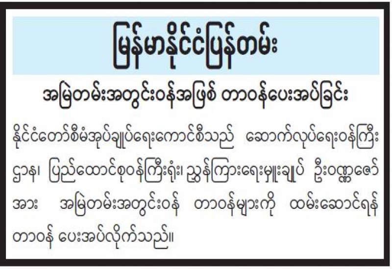 “နိုင်ငံတော်ကာကွယ်ရေးဟာ အနိမ့်ဆုံးအဆင့် ပြည်သူလူထုကို ကာကွယ်ရန်၊ အမြင့်ဆုံးအဆင့် နိုင်ငံတော်ရဲ့ အမျိုးသားရေးတာဝန်ဖြစ်တဲ့ ဒို့တာဝန်အရေး (၃)ပါးကို ကာကွယ်ရန်ဖြစ်ပြီး ကျွန်တော်တို့တပ်မတော်သားများဟာ ကိုယ်ပိုင်ဆန္ဒနဲ့အညီ ပုဂ္ဂလိကသဘောမဟုတ်ဘဲ အများအကျိုးအတွက်ကာကွယ်ရေးတာဝန်ထမ်းဆောင် နေခြင်းဖြစ်ပါတယ်”ဟု နိုင်ငံတော် စီမံအုပ်ချုပ်ရေးကောင်စီဥက္ကဋ္ဌ နိုင်ငံတော်ဝန်ကြီးချုပ် က နိုင်ငံတော်စီမံအုပ်ချုပ်ရေး ကောင်စီတစ်နှစ်ပြည့် နိုင်ငံတော်တာဝန် ထမ်းဆောင်ခဲ့မှုနှင့်ပတ်သက်၍ မိန့်ကြားချက်တွင် အသိပေးမှာကြားထားသည်။