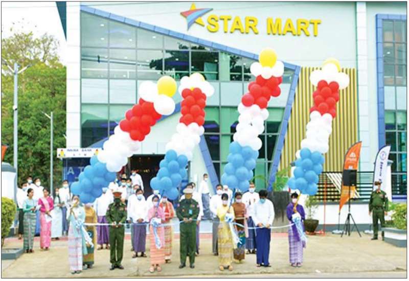 (၇၇)နှစ်မြောက် တပ်မတော်နေ့ကို ဂုဏ်ပြုကြိုဆိုသောအားဖြင့် မြန်မာစီးပွားရေးကော်ပိုရေးရှင်း STAR MART အရောင်းဆိုင်ဖွင့်ပွဲကို ယနေ့နံနက်ပိုင်းက နေပြည်တော်ကောင်စီနယ်မြေ ပျဉ်းမနားမြို့နယ် အောင်ချမ်းသာ (၁) ရပ်ကွက် ရွာကောက် ရန်ကုန်-မန္တလေးလမ်းအနီးရှိ အဆိုပါအရောင်းဆိုင်၌ ကျင်းပရာ နေပြည်တော်တိုင်းစစ်ဌာနချုပ် တိုင်းမှူး ဗိုလ်ချုပ်ဇော်ဟိန်း၊ နေပြည်တော်ကောင်စီဝင် ဗိုလ်မှူးကြီး မင်းနောင်နှင့် တာဝန်ရှိသူများ၊ ဖိတ်ကြားထားသူများ တက်ရောက်ကြသည်။