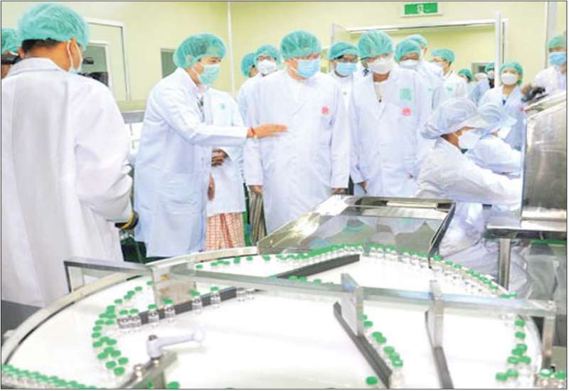 Myancopharm ကိုဗစ်-၁၉ ရောဂါ ကာကွယ်ဆေး စတင်ထုတ်လုပ်မှုနှင့် မိတ်ဆက်ခြင်း အခမ်းအနားကို ယနေ့နံနက်ပိုင်းက ရန်ကုန်တိုင်းဒေသကြီး လှည်းကူးမြို့နယ်ရှိ ဆေးဝါးစက်ရုံခွဲ (ရွာသာကြီး) ၌ ကျင်းပသည်။