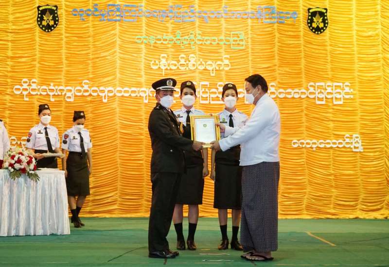 ၂၀၂၁-၂၀၂၂ ခုနှစ် တိုင်းဒေသကြီးနှင့် ပြည်နယ်လှေလှော်ပြိုင်ပွဲ၌ တံခွန်စိုက်ဆုရ လှေလှော်အားကစားအဖွဲ့နှင့် အားကစားနည်းအလိုက် ဆုရရှိသူများကို ဂုဏ်ပြုချီးမြှင့်ပွဲကို ယနေ့ နံနက်ပိုင်းတွင် ရန်ကုန်တိုင်းဒေသကြီး အစိုးရအဖွဲ့ရုံး မင်္ဂလာခန်းမ၌ ပြုလုပ်ရာ ရန်ကုန်တိုင်းဒေသကြီး ဝန်ကြီးချုပ် ဦးစိုးသိန်း၊ ရန်ကုန်တိုင်းစစ်ဌာနချုပ် တိုင်းမှူး ဗိုလ်ချုပ် ညွန့်ဝင်းဆွေနှင့် ရန်ကုန်တိုင်းဒေသကြီး အားကစားနှင့်ကာယပညာ ကော်မတီဥက္ကဋ္ဌ တိုင်းဒေသကြီး ဥပဒေချုပ် ဦးဌေးအောင်၊ တိုင်းဒေသကြီးအစိုးရအဖွဲ့ဝင် ဝန်ကြီးများ၊ ဖိတ်ကြားထားသူများ တက်ရောက်ကြသည်။