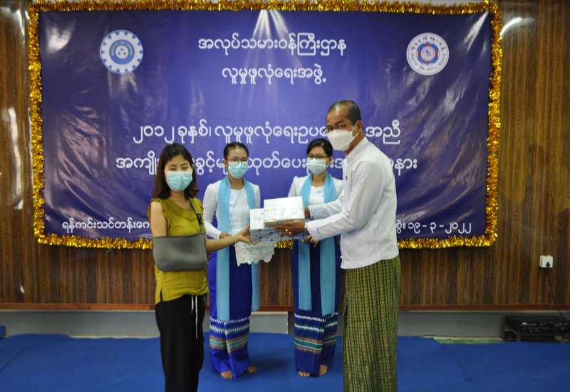 ၂၀၁၂ ခုနှစ်၊ လူမှုဖူလုံရေးဥပဒေနှင့်အညီ အလုပ်ခွင်ထိခိုက်မှုကြောင့်သေဆုံးခြင်း၊ အမြဲတမ်း မသန်စွမ်းဖြစ်ခြင်းတို့အတွက် ကျန်ရစ်သူအကျိုးခံစားခွင့်နှင့် ငွေလုံးငွေရင်း ခွင့်ပြုထုတ်ပေးသည့် အခမ်းအနားကို ယနေ့နံနက်ပိုင်းက ရန်ကုန်တိုင်းဒေသကြီး၊ ကျွမ်းကျင်မှု လေ့ကျင့်ရေးသင်တန်း ကျောင်း(ရန်ကင်း)၌ ကျင်းပရာ အလုပ်သမားဝန်ကြီးဌာန၊ ဒုတိယဝန်ကြီး ဦးဝင်းရှိန်နှင့် ရန်ကုန်တိုင်းဒေသကြီးအစိုးရအဖွဲ့၊ တာဝန်ရှိသူများ၊ အလုပ်သမားဝန်ကြီးဌာန၊ ရန်ကုန်တိုင်းဒေသကြီး တာဝန်ခံများ တက်ရောက် ကြသည်။