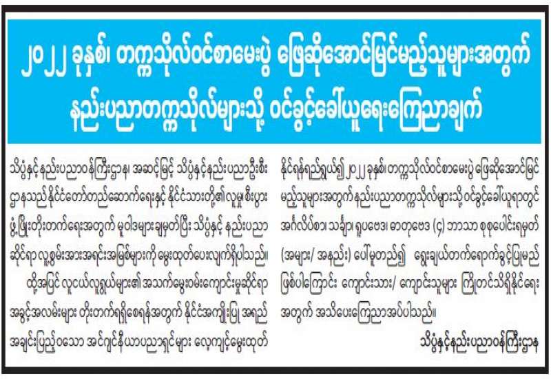 သာသနာရေးနှင့် ယဉ်ကျေးမှုဝန်ကြီးဌာန၊ သမိုင်းသုတေသနနှင့် အမျိုးသားစာကြည့်တိုက် ဦးစီးဌာနသည် တစ်ဆက်တစ်စပ်တည်းသော မြန်မာ့သမိုင်းဖြစ်ပေါ်လာစေရေးတွင် ကွက်လပ် ဖြစ်နေသော လူမှုစီးပွားအခန်းကဏ္ဍအတွက် အထောက်အပံ့ရရှိစေရန် ရည်ရွယ်၍ “ကိုလိုနီခေတ် မြန်မာ့လူမှုစီးပွားဘဝ” သုတေသနစာတမ်းဖတ်ပွဲကို ယနေ့နံနက် ၉ နာရီခွဲတွင် အမျိုးသား စာကြည့်တိုက်(နေပြည်တော်)ရှိ ဝန်ဇင်းမင်းရာဇာခန်းမ၌ ကျင်းပသည်။