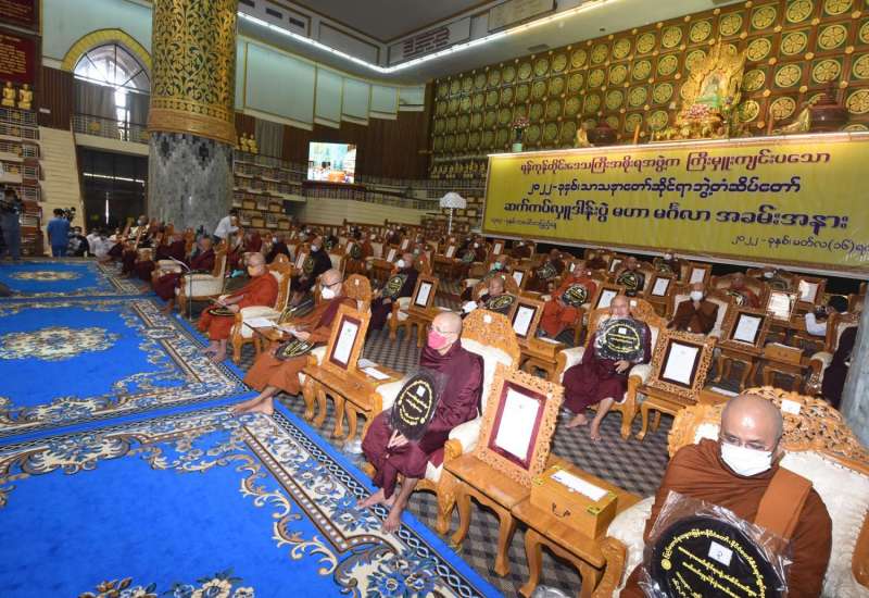 ရန်ကုန်တိုင်းဒေသကြီးအတွင်းရှိ ၂၀၂၂ ခုနှစ် သာသနာတော်ဆိုင်ရာ ဘွဲ့တံဆိပ်တော်ရ ဆရာတော်ကြီးများ၊ သီလရှင်ဆရာကြီးများနှင့် လူပုဂ္ဂိုလ်များအား သာသနာတော်ဆိုင်ရာ ဘွဲ့တံဆိပ်တော်များ ဆက်ကပ်လှူဒါန်းပွဲ အပ်နှင်းမဟာမင်္ဂလာအခမ်းအနားကို ယနေ့ မွန်းလွဲ ၁ နာရီတွင် ရန်ကုန်မြို့ သီရိမင်္ဂလာကမ္ဘာအေးကုန်းမြေရှိ ဆဋ္ဌသင်္ဂါယနာတင် မဟာပါ သာဏ လိုဏ်ဂူသိမ်တော်ကြီး၌ ကျင်းပသည်။