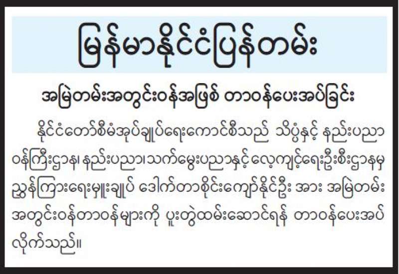 အမြဲတမ်းအတွင်းဝန်အဖြစ် တာဝန်ပေးအပ်ခြင်း