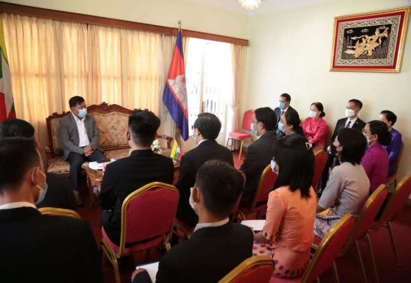 (၁၉)ကြိမ်မြောက်အာဆီယံ တပ်မတော်ကာကွယ်ရေးဦးစီးချုပ်များ အစည်းအဝေး 19 th ASEAN Chiefs of Defence Forces Meeting (ACDFM-19) တက်ရောက်ရန် ကမ္ဘောဒီးယားနိုင်ငံသို့ရောက်ရှိနေ သည့် ညှိနှိုင်းကွပ်ကဲရေးမှူး(ကြည်း၊ရေ၊လေ) ဗိုလ်ချုပ်ကြီး မောင်မောင်အေး သည် ယနေ့ညနေပိုင်းတွင် ကမ္ဘောဒီးယားနိုင်ငံ ဆိုင်ရာ မြန်မာနိုင်ငံသံရုံးသို့သွားရောက်၍ သံရုံးနှင့်စစ်သံရုံး မိသားစုများ၊ သင်တန်း သားများအားတွေ့ဆုံ အမှာစကားပြောကြားသည်။
