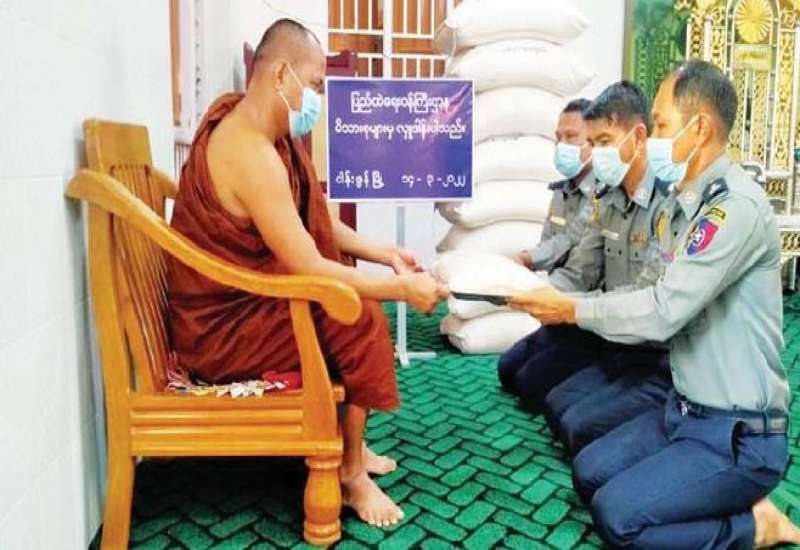 ပြည်ထဲရေးဝန်ကြီးဌာန တပ်ဖွဲ့ဝင်/ဝန်ထမ်း အရာထမ်း၊ အမှုထမ်း မိသားစုများက မြို့နယ်အသီးသီးရှိ ဘုန်းတော်ကြီးကျောင်းများသို့ ဆွမ်းဆန်တော်များ ဆက်ကပ်လှူဒါန်းလျက်ရှိသည်။