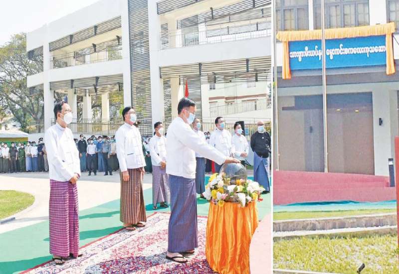 (၇၇) နှစ်မြောက် တပ်မတော်နေ့ကို ကြိုဆိုဂုဏ်ပြုသောအားဖြင့် ပြည်သူ့ဆေးရုံကြီး၊ မကွေး မြို့ သားဖွားမီးယပ်ဆောင်နှင့် မွေးကင်းစကလေး(၃)ထပ် ကုသဆောင်သစ် ဖွင့်ပွဲကို ယနေ့နံနက်ပိုင်း တွင် ပြုလုပ်ရာ နိုင်ငံတော်စီမံအုပ်ချုပ်ရေးကောင်စီ အတွင်းရေးမှူး ဒုတိယဗိုလ်ချုပ်ကြီး အောင်လင်းဒွေး၊ ကျန်းမာရေးဝန်ကြီးဌာန ပြည်ထောင်စုဝန်ကြီး ဒေါက်တာသက်ခိုင်ဝင်း၊ မကွေး တိုင်းဒေသကြီး ဝန်ကြီးချုပ် ဦးတင့်လွင်၊ မကွေးတိုင်းဒေသကြီးအစိုးရအဖွဲ့ဝင် ဝန်ကြီးများ၊ ညွှန်ကြားရေးမှူးချုပ်နှင့် တာဝန်ရှိသူများ၊ ဌာနဆိုင်ရာမှ ဖိတ်ကြားထားသော ဧည့်သည်တော်များ၊ မြို့မိမြို့ဖများ တက်ရောက်ခဲ့ကြသည်။