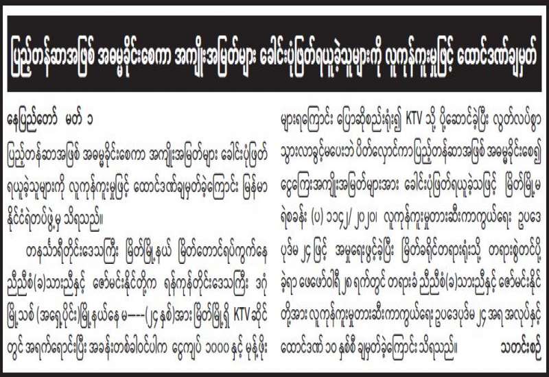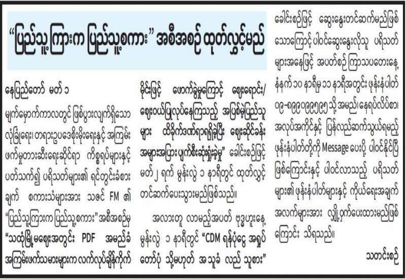 "ပြည်သူ့ကြားက ပြည်သူ့စကား" အစီအစဉ်ထုတ်လွှင့်မည် နေပြည်တော် မတ် ၁