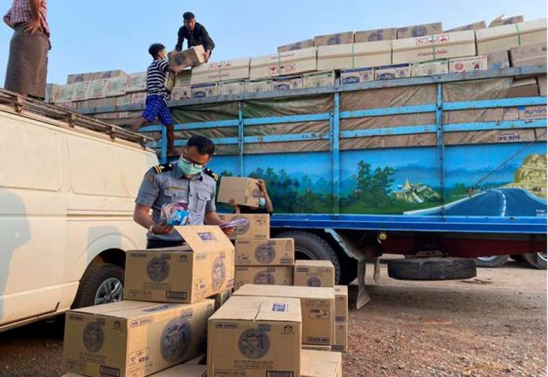 စီးပွားရေးနှင့်ကူးသန်းရောင်းဝယ်ရေး ဝန်ကြီးဌာနအနေဖြင့် ကိုဗစ်-၁၉ ရောဂါကာကွယ်၊ ထိန်းချုပ်၊ ကုသရေးဆိုင်ရာ ပစ္စည်းများကို လေကြောင်း၊ ပင်လယ်ရေကြောင်းနှင့် နယ်စပ်ကုန်သွယ်ရေးစခန်းများမှ နှောင့်နှေးကြန့်ကြာမှုမရှိ တင်သွင်းနိုင်ရေးအတွက် အချိန်နှင့်တစ်ပြေးညီ စီစဉ်ဆောင်ရွက်ပေးလျက်ရှိရာ ယနေ့တွင် ချင်းရွှေဟော် ကုန်သွယ်ရေးစခန်းမှ ကုမ္ပဏီ (၁)ခု၊ ယာဉ်စီးရေ (၅)စီးဖြင့် နှာခေါင်းစည်း(Mask) (၃၆)တန်ကို တင်သွင်းခဲ့ကြောင်း သိရသည်။