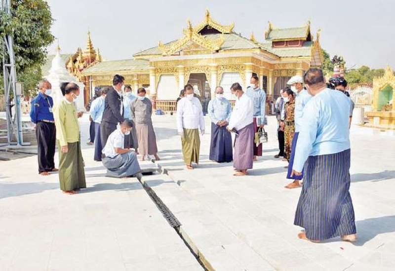 မန္တလေးတိုင်းဒေသကြီးဝန်ကြီးချုပ် ဦးမောင်ကိုသည် ယနေ့နံနက်ပိုင်းတွင် တိုင်းဒေသကြီးဝန်ကြီးများနှင့်အတူ အောင်မြေသာစံမြို့နယ် မဟာလောကမာရဇိန် ကုသိုလ်တော် ဘုရားရင်ပြင်တော် နေပူခံစကျင်ကျောက်ပြားခင်း လုပ်ငန်းပြီးစီးမှုကို လိုက်လံကြည့်ရှုကာ သတ်မှတ်ကာလအတွင်း ပြီးစီးရေး၊ လက်ရာသေသပ်စွာ ဆောင်ရွက်ရေး၊ ဘုရားဖူးပြည်သူများ စိတ်အေးချမ်းသာစွာ ဖူးမြော်နိုင်ရေး အတွက် သန့်ရှင်းသာယာလှပရေး ဆောင်ရွက်ရန်နှင့် ဘုရားဘက်စုံ ဖွံ့ဖြိုးတိုးတက်ရေးလုပ်ငန်းများ ဆောင်ရွက်ရာတွင် လုပ်ထုံးလုပ်နည်းနှင့်အညီ ဆောင်ရွက်ရေးတို့ကို မှာကြားပြီး လိုအပ်သည်များ ပေါင်းစပ်ဆောင်ရွက်ပေးသည်။