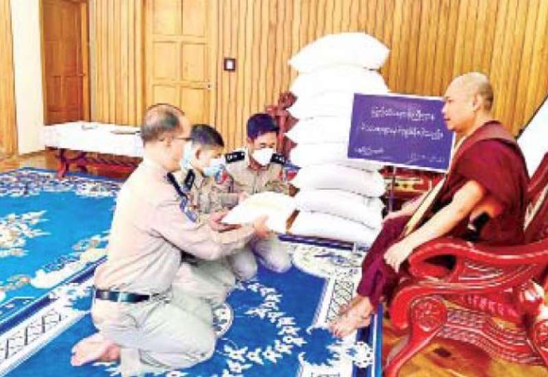 ကိုဗစ်-၁၉ ရောဂါ ကြိုတင်ကာကွယ်ရေး လုပ်ငန်းများ ဆောင်ရွက်နေသည့်ကာလအတွင်း ဆွမ်းကိစ္စရပ်များ အဆင်ပြေစေရန် ရည်ရွယ်၍ ပြည်ထဲရေးဝန်ကြီးဌာန တပ်ဖွဲ့ဝင်/ဝန်ထမ်း အရာထမ်း၊ အမှုထမ်း မိသားစုများက မြို့နယ်အသီးသီးရှိ ဘုန်းတော်ကြီးကျောင်းများသို့ ဆွမ်းဆန်တော်များ ဆက်ကပ်လှူဒါန်းခြင်းကို ဆောင်ရွက်လျက်ရှိသည်။