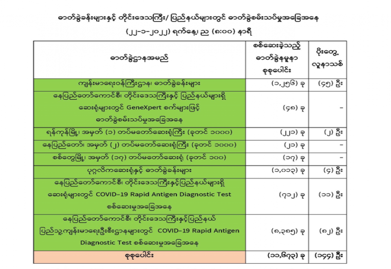 COVID-19 ရောဂါစောင့်ကြပ်ကြည့်ရှုမှုနှင့်ပတ်သက်၍ သတင်းထုတ်ပြန်ခြင်း (၂၂-၁-၂၀၂၂) ရက်နေ့၊ ည (၈:၀၀) နာရီ