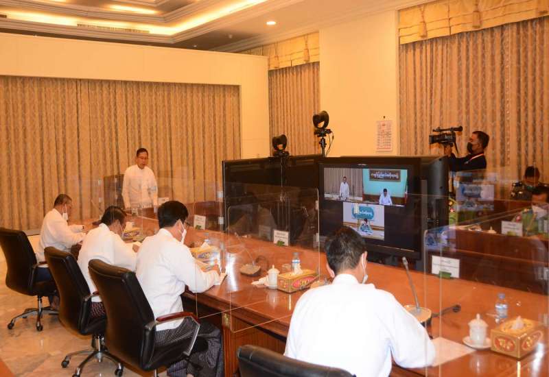 မြန်မာ - တရုတ် နယ်စပ်မြို့များတွင် ကိုဗစ်-၁၉ စင်တာများ၊ ကိုဗစ်-၁၉ ကာကွယ် ထိန်းချုပ်ရေးလုပ်ငန်းများနှင့်ပတ်သက်၍ ကိုဗစ် - ၁၉ ထိန်းချုပ်ရေးနှင့် အရေးပေါ် တုံ့ပြန်ရေး ကော်မတီ၏ လုပ်ငန်းညှိနှိုင်းအစည်းအဝေးကို ယနေ့မွန်းလွဲ ၂ နာရီတွင် နေပြည်တော်ရှိ နိုင်ငံတော်စီမံအုပ်ချုပ်ရေး ကောင်စီဥက္ကဋ္ဌရုံး အစည်းအဝေးခန်းမ၌ကျင်းပရာ ကိုဗစ် - ၁၉ ထိန်းချုပ်ရေးနှင့်အရေးပေါ်တုံ့ပြန်ရေးကော်မတီ ဥက္ကဋ္ဌ၊ နိုင်ငံတော်စီမံအုပ်ချုပ်ရေးကောင်စီ ဒုတိယဥက္ကဋ္ဌ၊ ဒုတိယဝန်ကြီးချုပ် ဒုတိယဗိုလ်ချုပ်မှူးကြီးစိုးဝင်း တက်ရောက်အမှာစကား ပြောကြားသည်။
