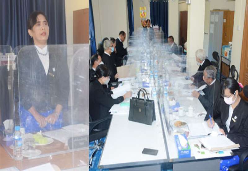 ယနေ့ နံနက်ပိုင်းက တရားလွှတ်တော်ရှေ့နေများကောင်စီ၏ ပထမအကြိမ် အစည်းအဝေး အမှတ်စဉ်- ၁/၂၀၂၂ ကို နေပြည်တော်၊ ဇမ္ဗူသီရိမြို့နယ်၊ ဝဏ္ဏသိဒ္ဓိရပ်ကွက်၊ နေပြည်တော် အားကစားလေ့ကျင့်ရေးစခန်း၊ Cluster–1, တိုက် အမှတ်(၆)ရှိ တရားလွှတ်တော်ရှေ့နေများ ကောင်စီရုံးတွင် COVID– 19 ကာကွယ်ထိန်းချုပ်ရေးဆိုင်ရာ Social Distancing နှင့်အညီ ကျင်းပပြုလုပ်သည်။