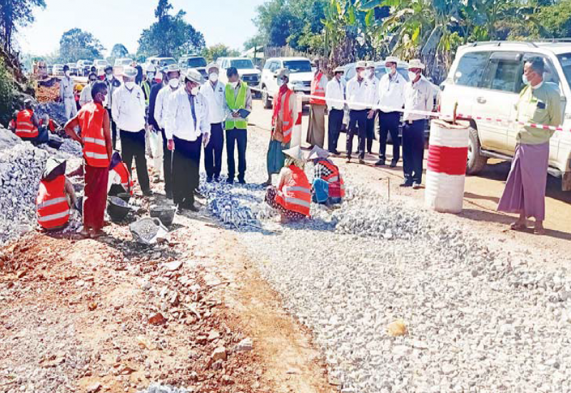 ဆောက်လုပ်ရေးဝန်ကြီးဌာန ဒုတိယဝန်ကြီး ဦးမင်းထိန်သည် ဇန်နဝါရီ ၇ ရက် မွန်းလွဲပိုင်းက တောင်ပေါ်ဒေသလမ်းဆောက် လုပ်ရေးကုမ္ပဏီလီမိတက်မှ B.O.Tစနစ်ဖြင့် ဆောင်ရွက်သော မိတ္ထီလာ-တောင်ကြီးကျိုင်းတုံ-တာချီလိတ်လမ်း (မိတ္ထီလာ - တောင်ကြီး) အပိုင်းလမ်းအဆင့် မြှင့်တင်ခြင်းလုပ်ငန်း ဆောင်ရွက်နေမှုကို လမ်းတစ်လျှောက်ကြည့်ရှုစစ်ဆေးသည်။