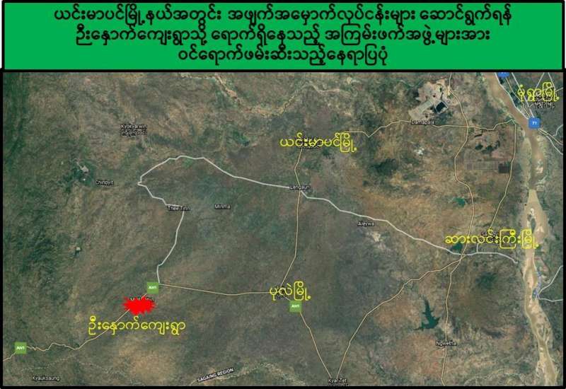 စစ်ကိုင်းတိုင်းဒေသကြီး၊ ယင်းမာပင်မြို့နယ်အတွင်း အကြမ်းဖက်လုပ်ငန်းများ လုပ်ဆောင်ရန်အတွက် ဦးနှောက်ကျေးရွာ၌ အစည်းအဝေး ပြုလုပ်ရန်စုဝေးနေသည့် PDF အမည်ခံ အကြမ်းဖက်သမားများအား လုံခြုံရေးတပ်ဖွဲ့ဝင်များက ယနေ့တွင် သွားရောက်ဖမ်းဆီးခဲ့ရာ အပြန်အလှန်ပစ်ခတ်မှု ဖြစ်ပွားခဲ့ပြီး အကြမ်းဖက်သမားများထံမှ အလောင်း ၅ လောင်း၊ လက်နက်၊ ခဲယမ်းနှင့် ဆက်စပ်ပစ္စည်းအချို့ သိမ်းဆည်းရမိခဲ့သည်။