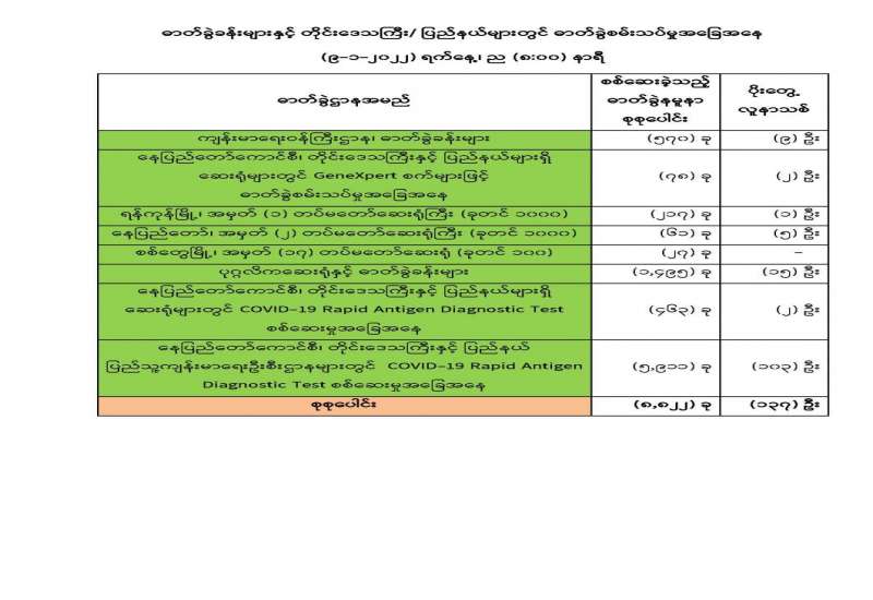 COVID-19 ရောဂါစောင့်ကြပ်ကြည့်ရှုမှုနှင့် ပတ်သက်၍ သတင်းထုတ်ပြန်ခြင်း (၉-၁-၂၀၂၂) ရက်နေ့၊ ည (၈:၀၀) နာရီ