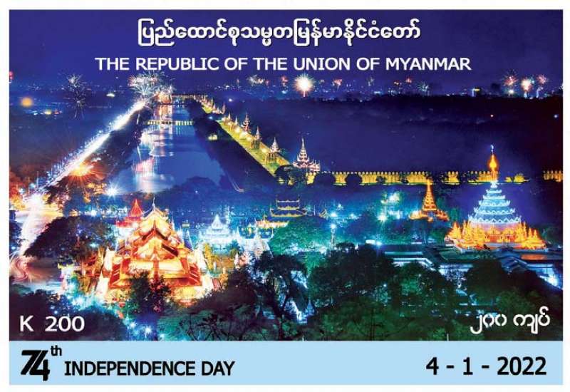 ပို့ဆောင်ရေးနှင့် ဆက်သွယ်ရေး ဝန်ကြီးဌာန မြန်မာ့စာတိုက် လုပ်ငန်းက (၇၄) နှစ်မြောက် လွတ်လပ်ရေးနေ့ အထိမ်းအမှတ် အထူးထုတ် (၂၀၀ ကျပ်တန်) စာပို့ တံဆိပ်ခေါင်းသစ် သုံးမျိုးကို ၂၀၂၂ ခုနှစ် ဇန်နဝါရီ ၄ ရက်၊ မြန်မာသက္ကရာဇ် ၁၃၈၃ ခုနှစ် ပြာသိုလဆန်း ၃ ရက်(အင်္ဂါနေ့) နံနက် ၉ နာရီခွဲမှစတင်၍ နေပြည်တော် ဗဟိုစာတိုက်ကြီး၊ ရန်ကုန် စာတိုက်ကြီး၊ မန္တလေးစာတိုက်ကြီးတို့နှင့် တိုင်းဒေသကြီး/ပြည်နယ်များရှိ စာတိုက်များတွင် ရောင်းချပေးသွားမည် ဖြစ်သည်။ အထူးအစီအစဉ် တစ်ရပ်အနေဖြင့် နေပြည်တော် ဗဟိုစာတိုက်ကြီး၊ ရန်ကုန်စာတိုက်ကြီးနှင့် မန္တလေး စာတိုက်ကြီး တို့တွင် ဇန်နဝါရီ ၄ ရက်တွင် ဝယ်ယူသော စာပို့တံဆိပ်ခေါင်းများပေါ်တွင် နေ့စွဲအမှတ် အသား တံဆိပ်ရိုက်နှိပ်ပေး မည်ဖြစ်ကြောင်း သိရသည်။