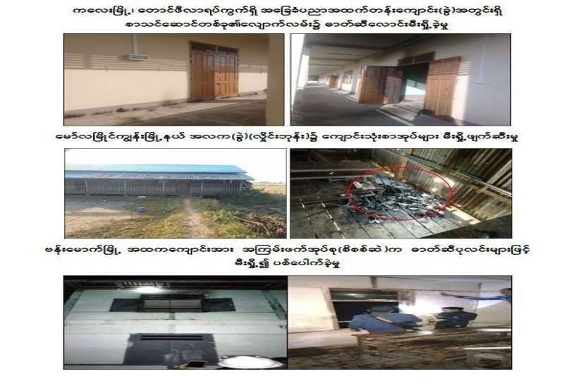 စစ်ကိုင်းတိုင်းဒေသကြီးနှင့် ဧရာဝတီတိုင်းဒေသကြီးအတွင်းရှိ မြို့နယ်အချို့၌ ကျောင်းသား၊ ကျောင်းသူများ အေးချမ်းစွာပညာသင်ကြားနေမှုအား မလိုလားသူ ဆူပူအကြမ်းဖက်သူများက စာသင်ကျောင်းများနှင့် ကျောင်းသုံးစာရွက်စာတမ်းများအား မီးလောင်ပျက်စီးစေရန် မီးရှို့ ဖျက်ဆီး ခြင်းများ လုပ်ဆောင်ခဲ့ကြောင်း သိရှိသည်။