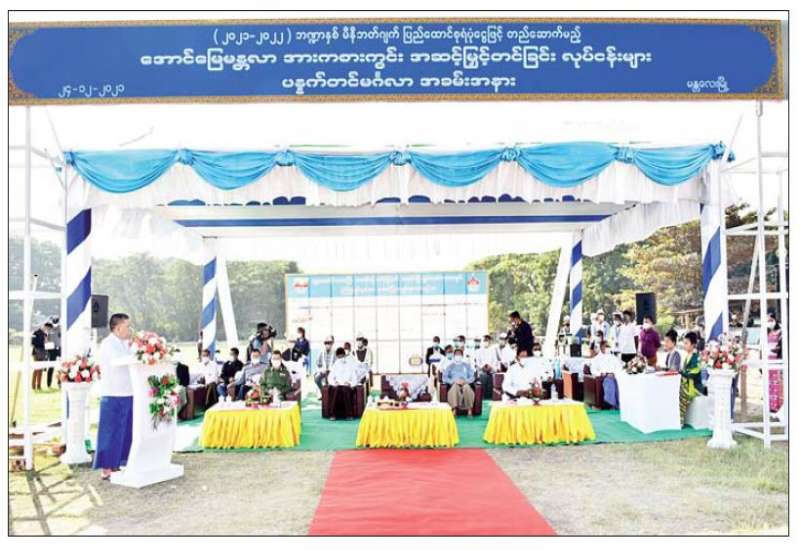 မန္တလေးတိုင်းဒေသကြီးဝန်ကြီးချုပ် ဦးမောင်ကိုသည် အစိုးရအဖွဲ့ဝင် ဝန်ကြီးများနှင့်အတူ ၂၀၂၁-၂၀၂၂ ဘဏ္ဍာနှစ် မီနီဘတ်ဂျက် ပြည်ထောင်စုရန်ပုံငွေဖြင့် အောင်မြေသာစံမြို့နယ်ရှိ အောင်မြေမန္တလာ အားကစားကွင်းတွင် ပွဲကြည့်စင်တည်ဆောက်မည့် ပန္နက်တင်မင်္ဂလာ အခမ်းအနားသို့ ယနေ့နံနက်ပိုင်းက တက်ရောက်ခဲ့ကြောင်း သိရသည်။