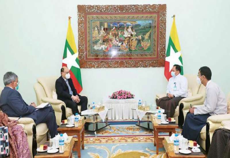 ပြည်ထောင်စုအစိုးရအဖွဲ့ရုံး ဝန်ကြီးဌာန(၁) ပြည်ထောင်စုဝန်ကြီး ဒုတိယဗိုလ်ချုပ်ကြီးရာပြည့်သည် အိန္ဒိယနိုင်ငံခြားရေးအတွင်းဝန် ရှရီ ဟူ၍ ဗော့ဒ်ဟန် ရှရင်ဂလာ ဦးဆောင်သည့် ကိုယ်စားလှယ် အဖွဲ့အား ယမန်နေ့နံနက်၁၁ နာရီတွင် နေပြည်တော်ရှိ ပြည်ထောင်စုအစိုးရအဖွဲ့ရုံး ဝန်ကြီးဌာန(၁) ရုံးအမှတ်(၄၁)၌ လက်ခံ တွေ့ဆုံသည်။