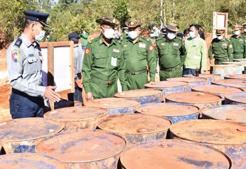 မူးယစ်ဆေးဝါးချက်လုပ်ရာတွင် အသုံးပြုသည့် ဓာတုပစ္စည်းများနှင့် ဆက်စပ် ပစ္စည်းများ ဖျက်ဆီးခြင်းကို ယနေ့နံနက်ပိုင်းတွင် ရှမ်းပြည်နယ်(တောင်ပိုင်း)၊ ခိုလမ်မြို့၊ ခိုလမ်-ကျိုင်းတောင်းသွားကားလမ်းဘေး၌ ပြုလုပ်ရာ အရှေ့အလယ်ပိုင်းတိုင်းစစ်ဌာနချုပ် တိုင်းမှူး ဗိုလ်မှူးချုပ် လှမိုးနှင့် အဖွဲ့ဝင်များ၊ မြန်မာနိုင်ငံ ရဲတပ်ဖွဲ့ဝင်များ၊ ကျန်းမာရေးဝန်ထမ်းများ၊ ပြည်သူ့စစ်(ဌာနေ)တပ်ဖွဲ့ဝင်များနှင့် ဌာနဆိုင်ရာတာဝန်ရှိသူများ တက်ရောက်ကြသည်။