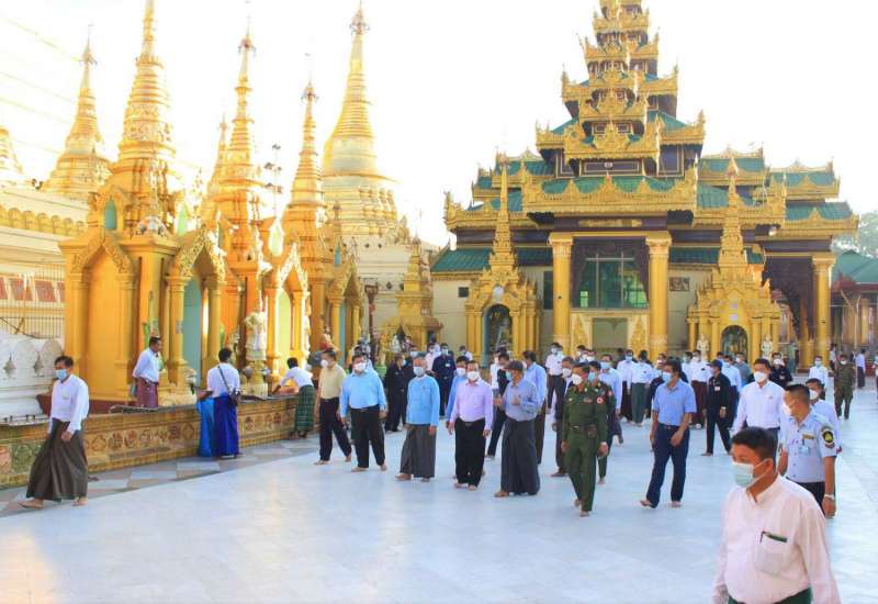 ရန်ကုန်တိုင်းဒေသကြီး ဒဂုံမြို့နယ်အတွင်းရှိ တိင်္ဂုတ္တရကုန်းတော်ပေါ်၌ တည်ထားကိုးကွယ်တော်မူသော လေးဆူဓာတ်ပုံ ရွှေတိဂုံစေတီတော်မြတ်ကြီး ရေရှည်တည်တံ့ ခိုင်မြဲစေရေး ထိန်းသိမ်းဆောင်ရွက်နေမှုနှင့် ရင်ပြင်တော် သန့်ရှင်းသာယာလှပစေရေး စုပေါင်းသန့်ရှင်းရေး ဆောင်ရွက်နေမှုကို ယနေ့နံနက် ၇ နာရီက ရန်ကုန်တိုင်းဒေသကြီး ဝန်ကြီးချုပ် ဦးလှစိုး၊ တိုင်းမှူး ဗိုလ်ချုပ် ညွှန့်ဝင်းဆွေ နှင့် အစိုးရအဖွဲ့ဝန်ကြီးများ က ကြည့်ရှုအားပေးခဲ့ကြောင်း သိရသည်။