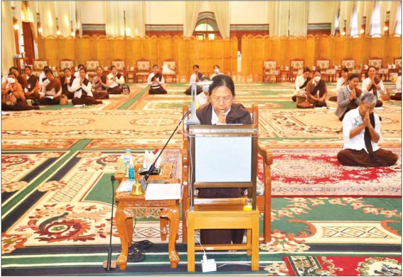 ကာကွယ်ရေးဦးစီးချုပ်ရုံး (ကြည်း၊ ရေ၊ လေ) မိသားစုဝတ်ရွတ်အဖွဲ့ဖြင့် အသံမစဲမဟာပဋ္ဌာန်းကျမ်း ငါးကျမ်း ရွတ်ဖတ်ပူဇော်ပွဲအောင်ပွဲကို ယနေ့နံနက်ပိုင်းတွင် ကာကွယ်ရေးဦးစီးချုပ်ရုံး(ကြည်း)၊ အနော်ရထာခန်းမ၌ ပြုလုပ်ရာ နိုင်ငံတော်စီမံအုပ်ချုပ်ရေးကောင်စီဥက္ကဋ္ဌ၊ နိုင်ငံတော်ဝန်ကြီးချုပ် ဗိုလ်ချုပ်မှူးကြီးမင်းအောင်လှိုင်၏ဇနီး ဒေါ်ကြူကြူလှ တက်ရောက်၍ သစ္စာပြုဆုတောင်း ရွတ်ဖတ်ပူဇော် အမျှဝေခဲ့သည်။ ထို့နောက် တက်ရောက်လာကြသူများနှင့်အတူ ဗုဒ္ဓသာသနံ စိရံတိဋ္ဌတု သုံးကြိမ်ရွတ်ဆိုကာ အခမ်းအနားကို ပိတ်သိမ်းခဲ့သည်။
