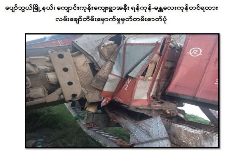 မန္တလေးတိုင်းဒေသကြီး၊ ပျော်ဘွယ်မြို့နယ်၊ မိုင်တိုင်အမှတ် ၂၈၅ နှင့် ၂၈၆ ကြား ကျောင်းကုန်း ကျေးရွာအနီးတွင် ယမန်နေ့ ညနေ ၅ နာရီခွဲအချိန်ခန့်က ကုန်တင်ရထားတစ်စီး လမ်းချော် တိမ်းမှောက်မှု ဖြစ်ပွားခဲ့ကြောင်း သိရသည်။