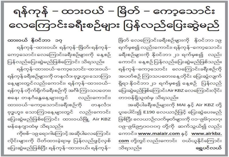 စီးပွားရေးနှင့် ကူးသန်းရောင်းဝယ် ရေးဝန်ကြီးဌာနအနေဖြင့် ကိုဗစ်၁၉ရောဂါ ကာကွယ်၊ ထိန်းချုပ်၊ ကုသရေးဆိုင်ရာ ပစ္စည်းများကို လေကြောင်း၊ ရေကြောင်းနှင့် နယ်စပ်ကုန်သွယ်ရေးစခန်းများမှ နှောင့်နှေးကြန့်ကြာမှုမရှိ တင်သွင်းနိုင်ရေးအတွက် အချိန်နှင့်တစ်ပြေးညီ စီစဉ်ဆောင်ရွက်ပေး လျက်ရှိရာ ယနေ့တွင် မြဝတီ၊ ချင်းရွှေဟော်နှင့် ကန်ပိုက်တီ ကုန်သွယ်ရေးစခန်း သုံးခုတို့မှ တင်သွင်းရာ၌ ကုမ္ပဏီနှစ်ခုမှ ယာဉ်စီးရေလေးစီးဖြင့် အောက်ဆီဂျင်(အရည်)Bowser ယာဉ်တစ်စီး ဖြင့် တန် ၂၀၊ PPE ဝတ်စုံ ၄၄၀ နှင့် နှာခေါင်းစည်း (Mask) ၁၄ တန်တို့ကို တင်သွင်းခဲ့သည်။ အောက်ဆီဂျင်(အရည်)Bowser ယာဉ်တစ်စီးမှာ မြဝတီစခန်းမှ ရန်ကုန်မြို့သို့ ဖြစ်ကြောင်း သိရှိရသည်။
