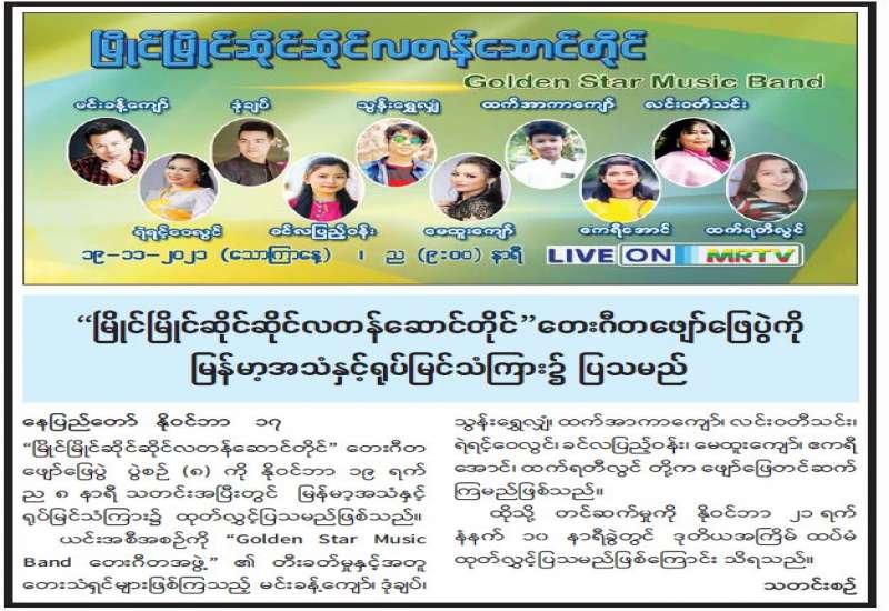 ပြန်ကြားရေးဝန်ကြီးဌာန ပုံနှိပ်ရေးနှင့် ထုတ်ဝေရေးဦးစီးဌာန စာပေဗိမာန်ရုံးက အပတ်စဉ် စနေနေ့တိုင်း ရွှေသွေးဂျာနယ်ကို ထုတ်ဝေဖြန့်ချိလျက်ရှိသည်။
