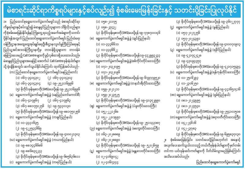 အကြမ်းဖက်အုပ်စုအဖြစ်ကြေညာထားသည့် CRPH ၊ NUG နှင့် ယင်းတို့၏ လက်ဝေခံအဖွဲ့အစည်းများ၊ ယင်းတို့နှင့်ဆက်နွှယ်နေသော အဖွဲ့အစည်းများ၊ လူပုဂ္ဂိုလ်များသည် နိုင်ငံတော်တည်ငြိမ်အေးချမ်းရေးကို ပျက်ပြားစေရန်နှင့် အစိုးရယန္တရားများပျက်ပြားစေရန် ရည်ရွယ်လျက်လှုံ့ဆော်ခြင်း၊ ဝါဒဖြန့်ခြင်းများပြုလုပ်ခဲ့မှုအပေါ် ဥပဒေနှင့်အညီထိရောက်စွာအရေးယူသွားမည်ဖြစ်ကြောင်းနှင့် ထိုသို့လှုံ့ဆော်သူ၊ ဝါဒဖြန့်သူများအား ဆက်လက်ဖော်ထုတ်အရေးယူသွားမည်ဖြစ်ကြောင်း မိဘပြည်သူများသိရှိနိုင်ရေး အသိပေးသတင်းထုတ်ပြန်ပြီးဖြစ်သည်။